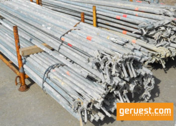 Mit diesem gebrauchten Gerüst können Sie kleine Gebäudeflächen bequem bearbeiten. Die enthaltenen Gerüstteile reichen aus, um ein Gerüst mit einer Gerüstfeldbreite und zwei Etagen aufzubauen.